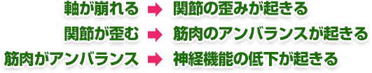 背骨にはあらゆる神経があり脳に繋がります。姿勢のゆがみは神経に悪影響を及ぼし、脳に正しい指令を伝達できなくなり、様々な問題を引き起き起こします。